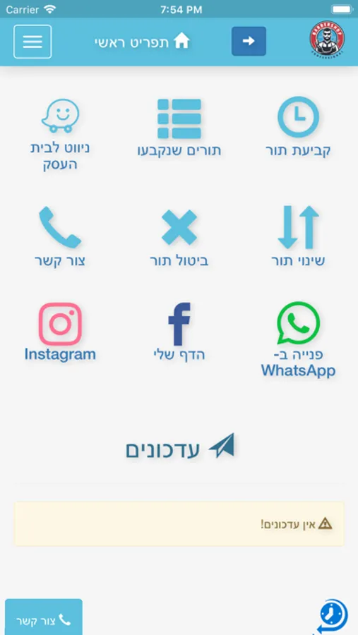 באפליקציה אפשר לקבוע תור, לנווט באמצעות Waze ולפנות אליי באמצעות WhatsApp.