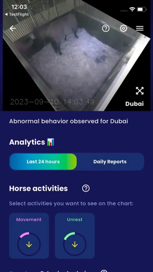Die spezielle Nachtsichtkamera mit IR-Licht (pferdeverträglich) liefert sekundengenaue Analysen von Pferdeverhalten unterstützt durch ACARiS künstlicher Intelligenz.