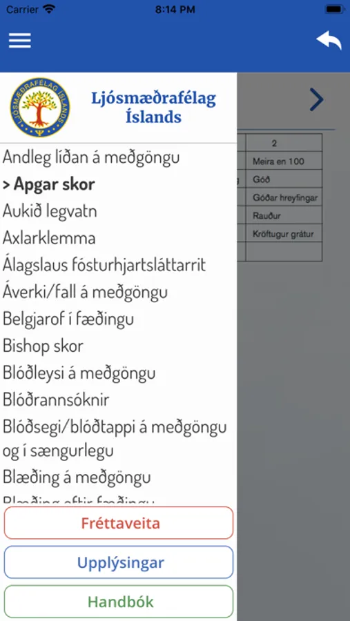 Til þess að komast inn í appið í fyrsta skipti þarf að slá inn lykilorð sem hægt er að nálgast hjá formanni ljósmæðrafélagsins.