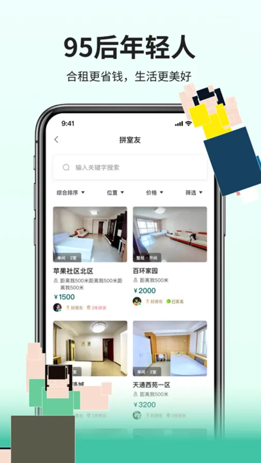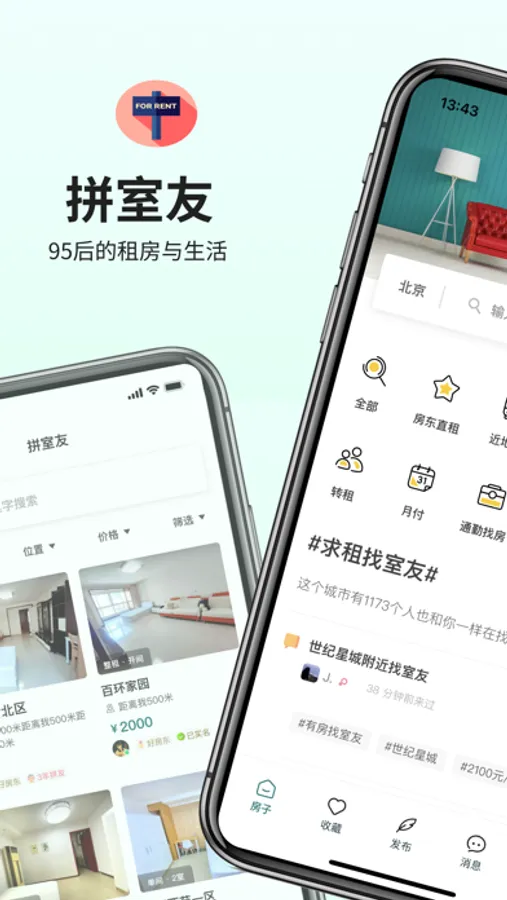 · 找整租: 一居两居随心筛选, 找到你想要的
