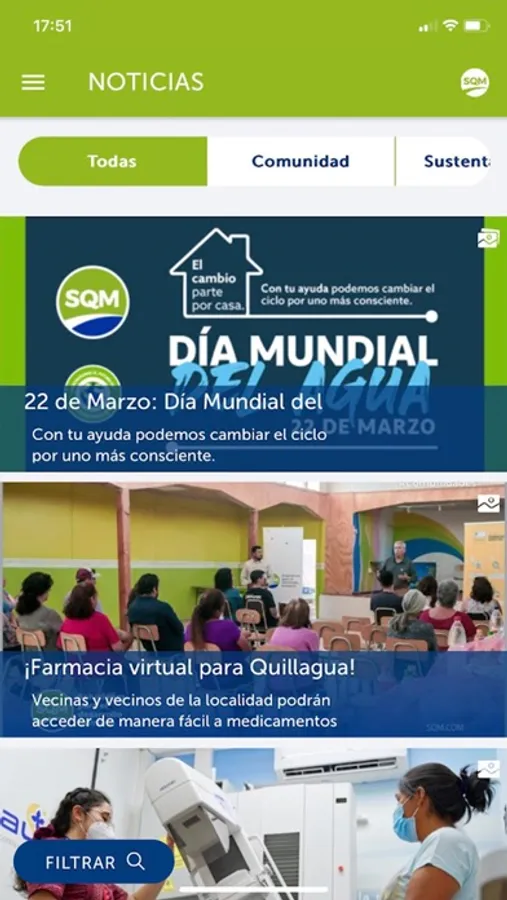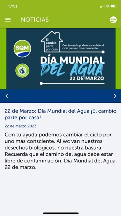 Con MI SQM podrás aprender a cuidar el medio ambiente, estar al tanto de las últimas noticias, conocer las acciones en materia de sustentabilidad, conectarte con nuestro equipo para resolver tus dudas o inquietudes, ya sean de las postulaciones a nuestras ofertas de empleo o dudas en general, postular a trabajos ofrecidos por la compañía, todo esto, en la palma de tu mano.
