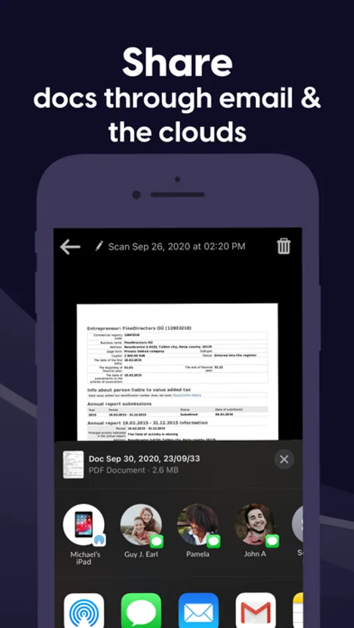 Scanner App is the perfect travel companion for your business needs. All scanned documents are stored locally on your device, they are inaccessible to us and to any third-party. You can easily share the documents by using the export option. If you need to protect your scans you can setup a password for the app or use FaceID to protect your documents.