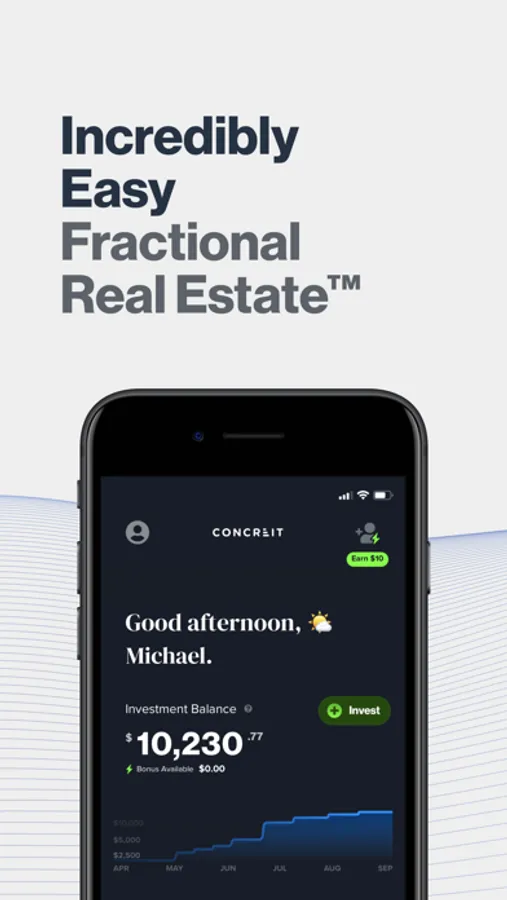 Incredibly Easy Real EstateTM in the app screenshots refers to the ease of use of the mobile application and the platform and does not infer that private real estate investing is easy or simple. Your investments with Concreit are actively managed by a team of industry professionals.