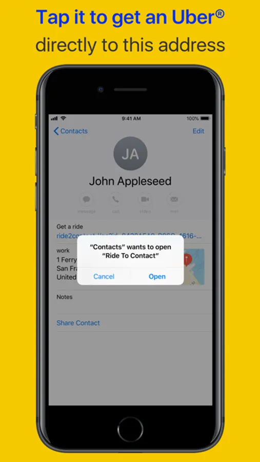 Next time that you need a ride to a contact, tap the "Get a ride" link. It will open the Uber app directly to that destination and show the trip prices.