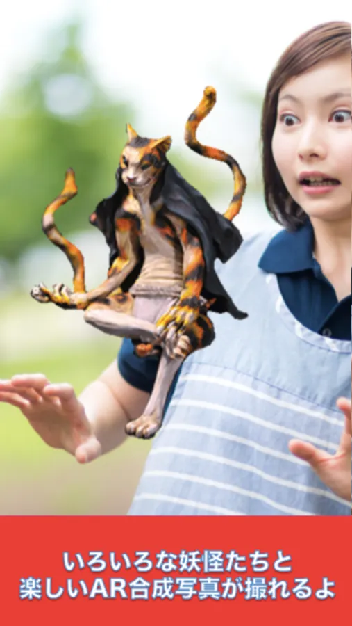 このアプリでは、実際に福崎町の街を散策してヒントやレーダーを頼りに妖怪を探し、カメラでAR写真を撮影することが出来ます。(上手に写さないと、妖怪から怒られるかも?)