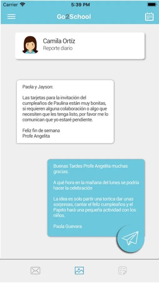 Ésta app go2school profesores, esta enfocada en facilitar el envío de información al padre, el app tiene 3 funcionalidades principales.