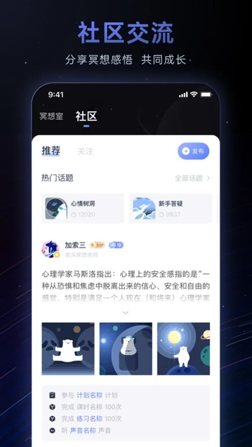 - 全场100+种冥想练习,随时随地开始冥想练习,持续更新中~