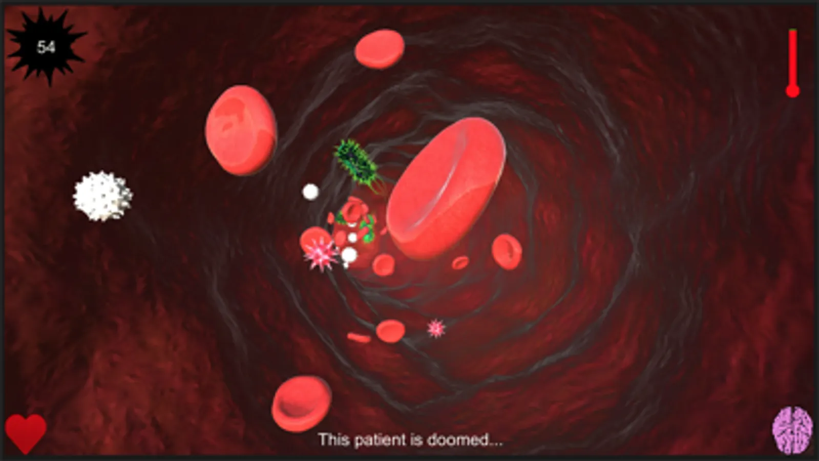 The patient starts with a temperature of 100 degree, as the infection goes up so does the temperature. If the temperature reaches 105 degrees the players brain cells start to die. If all the brain cells die the game is over.