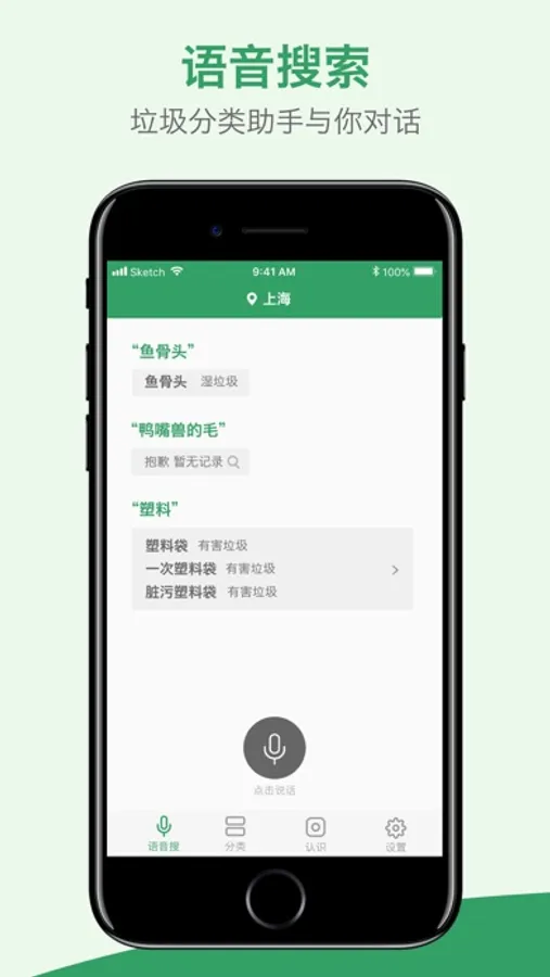 首创对话式语音查询,高识别率的语音功能,只需要说出垃圾名称就能知道结果。