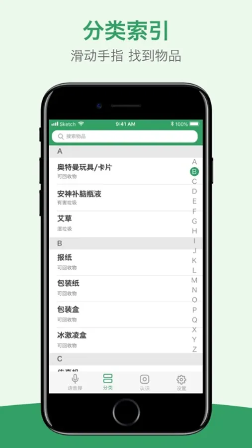快速、全面的垃圾分类数据,让你无需输入太多文字,只需要滑动一下列表就知道如何分类。