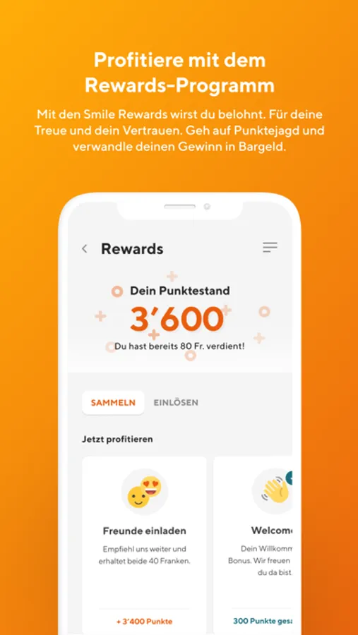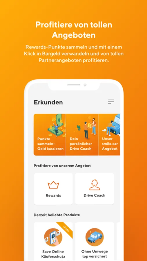 Egal ob beim sicheren Fahren oder bei einer Weiterempfehlung. Wir belohnen dich mit Smile Rewards-Punkten, die du in Bargeld umwandeln kannst.