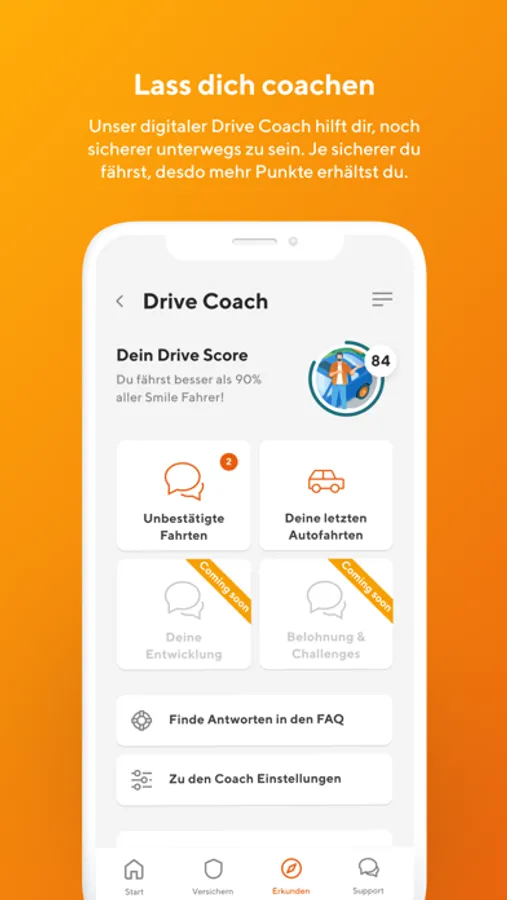 • Personalisierte Tipps von deinem Drive Coach für mehr Sicherheit beim Fahren