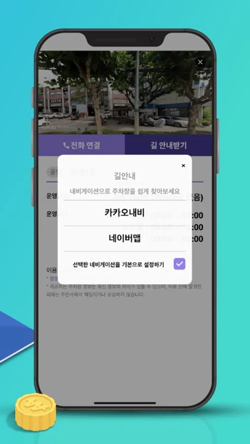 - 위치 : 내비게이션 연동, 주변 주차장 검색을 위해 필요합니다.