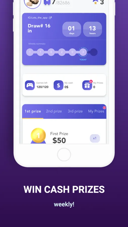 "Our selection process works similar to a lottery concept. The more you play, and the better you play, the more tickets you earn that will increase your chances of winning in our recurring weekly draw. We have multiple winners and the prizes are real cash prizes, all for free. Download the app now and start winning today!"