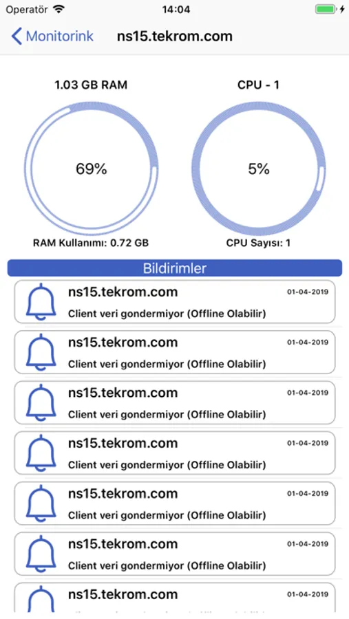 Sunucu bildirim takibini kolaylıkla yapabilir, sunucunuzun kullanım oranlarını detaylı bir şekilde görüntüleyebilirsiniz.