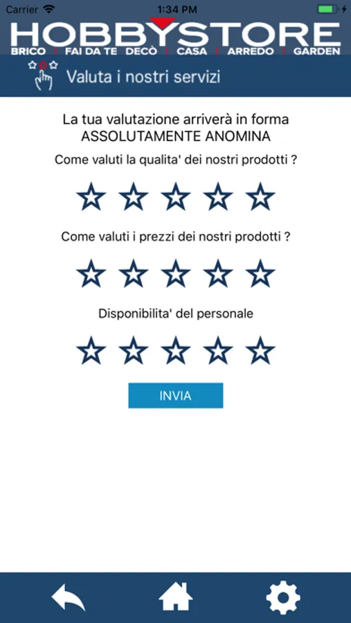 Oltre ai vari link ed alle classiche informazioni, l'altro aspetto interattivo che vuol essere un punto di contatto e costante miglioramento dei servizi nei confronti della propria clientela, l'app ha una sezione "Valuta i nostri servizi" dove saranno poste di volta in volta, tre domande che raccoglieranno (anonimamente) le valutazioni degli utenti così da poter intervenire dove necessario, avendo un riscontro diretto e immediato sul gradimento o meno di quanto proposto.