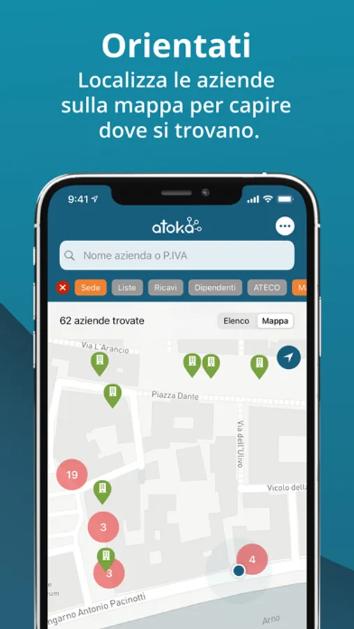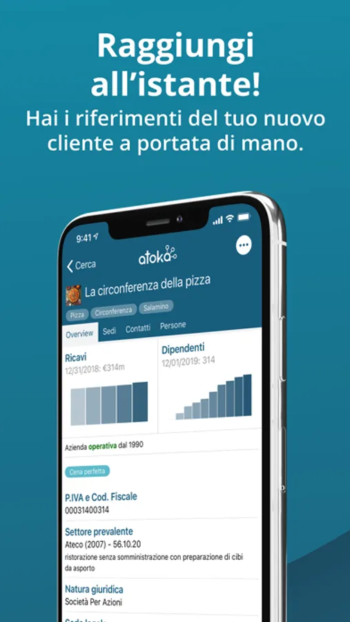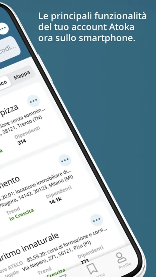 Con l’app gratuita di Atoka ritrovi le principali funzioni del tuo account Atoka direttamente sullo smartphone!
