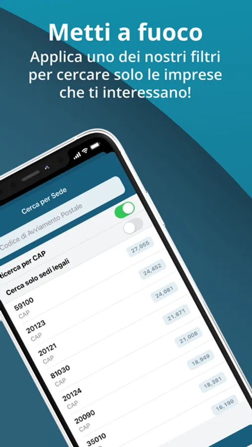 utilizzi molteplici filtri per cercare e segmentare le aziende in database,