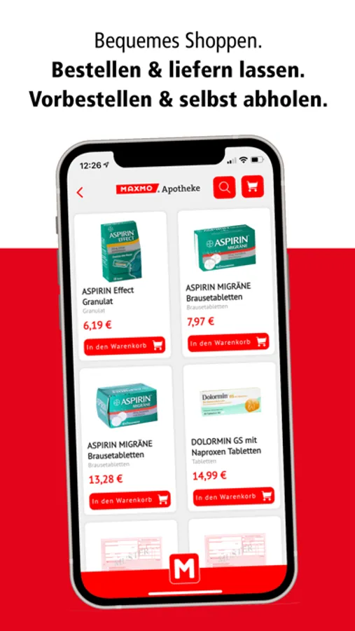 Damit haben Sie direkten Zugriff auf alle Produkte des MAXMO Online-Shops, können bequem bestellen, Rezepte elektronisch hochladen und Ihr MAXMO Kundenkonto einsehen. Profitieren Sie zusätzlich von vielen weiteren Vorteilen wie individuellen Rabatten und Aktionen.