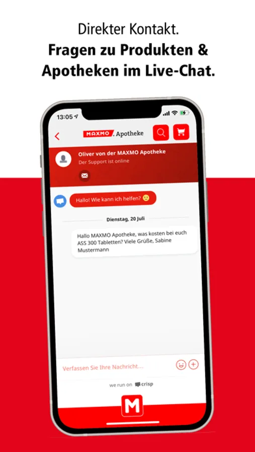 Wenn Sie Fragen zu Produkten oder unseren Apotheken haben, sind wir im Live-Chat für Sie da und helfen Ihnen gerne weiter.