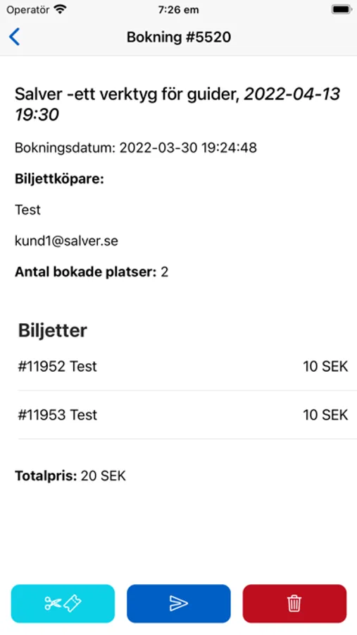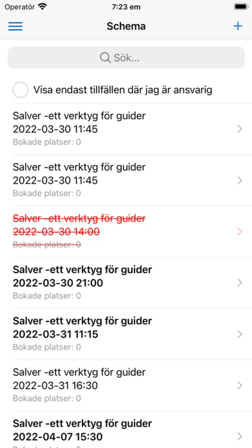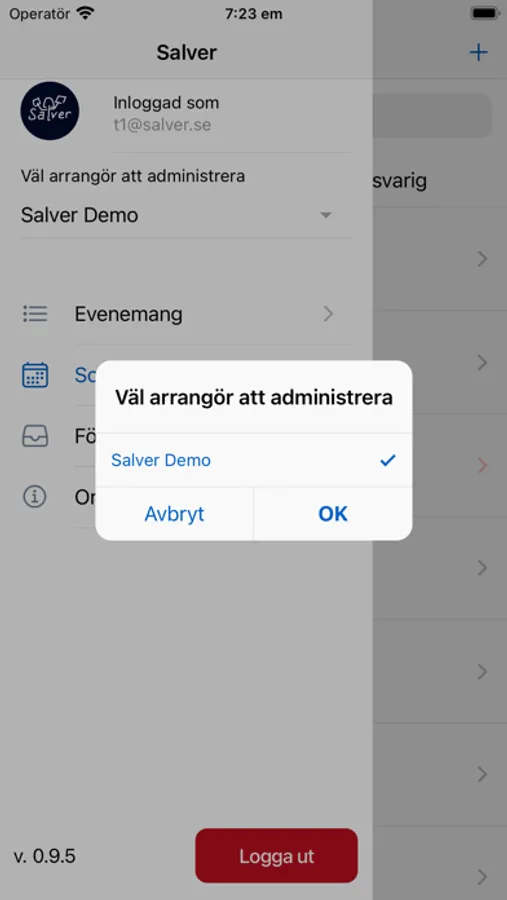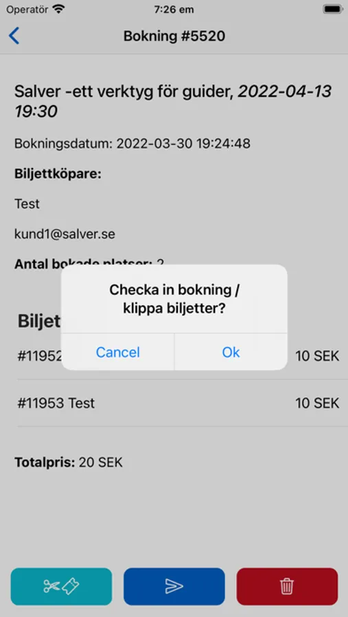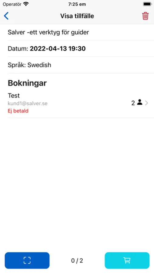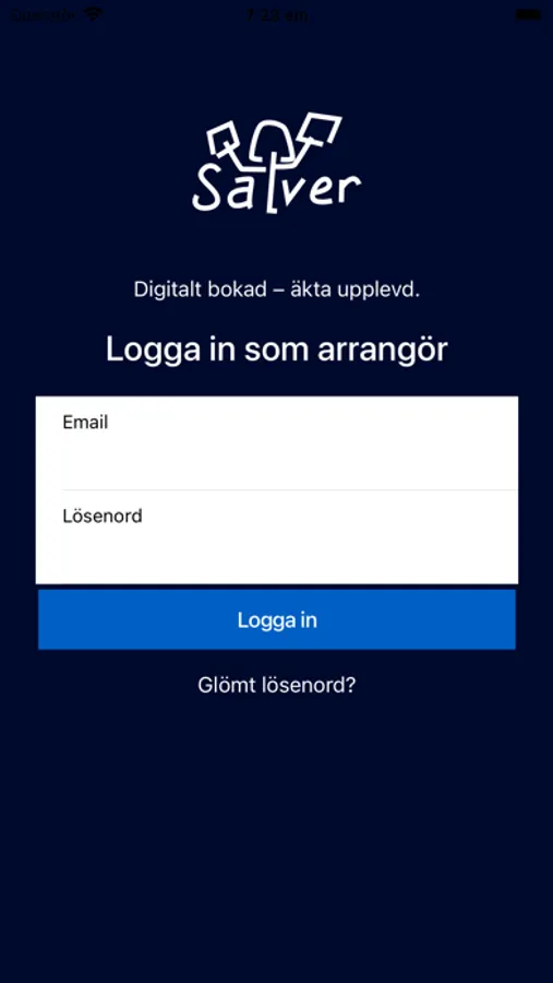 En app för dig som arrangör i Salver, med funktioner för att hantera tillfällen, bokningar och skanna biljetter.