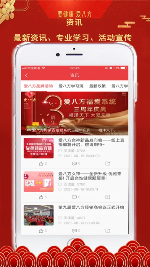 通过多年不断的努力和创新,爱八方实现着高速发展;研发能力飞速提升,实现将健康数据化、标准化、现代化,成为国内的高科技公司,健康品牌价值不断提升,在社会的影响力越来越大。想要更健康就找爱八方,爱八方是您健康生活的好帮手。