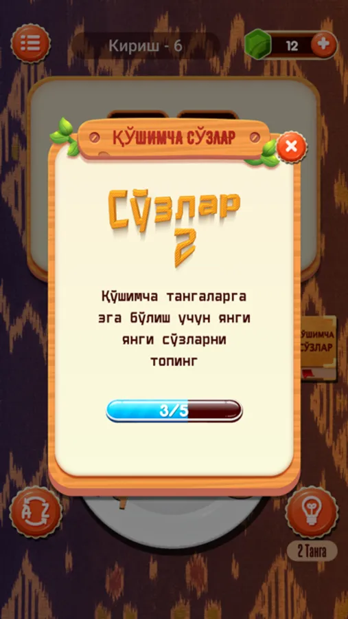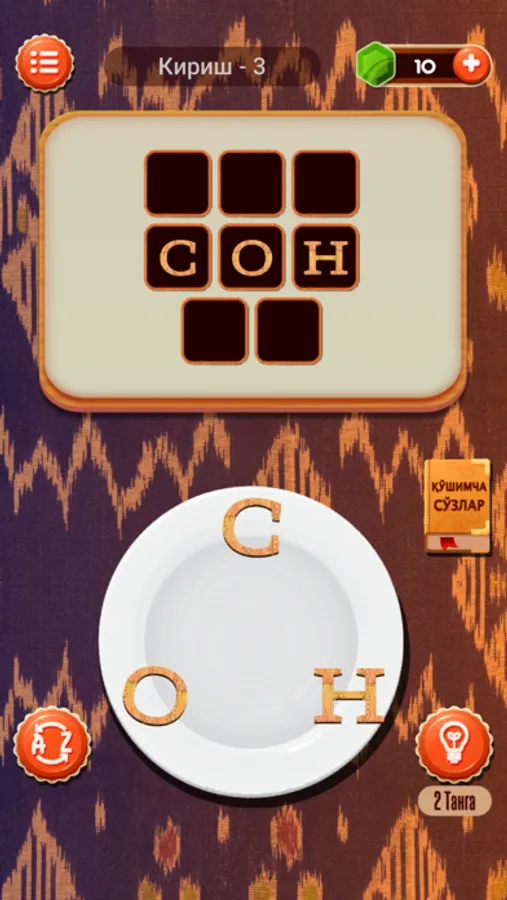 * Қийналиб қолган жойингизда еса, тангалардан фойдаланиб, ёрдам харф олиб, ўйнашда давом етинг.