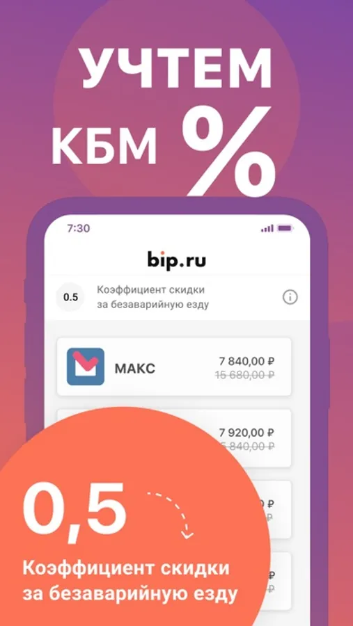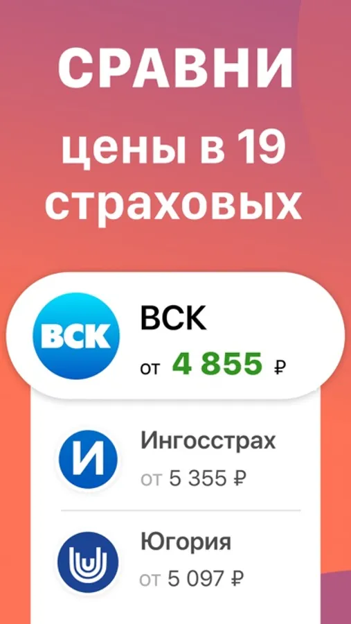 Приложение ОСАГО Онлайн от bip.ru рассчитывает цену на ОСАГО у 19 страховых компаний. Выберите лучшее предложение и оформите полис онлайн. Без визита в офис страховой компании, очередей и курьеров.
