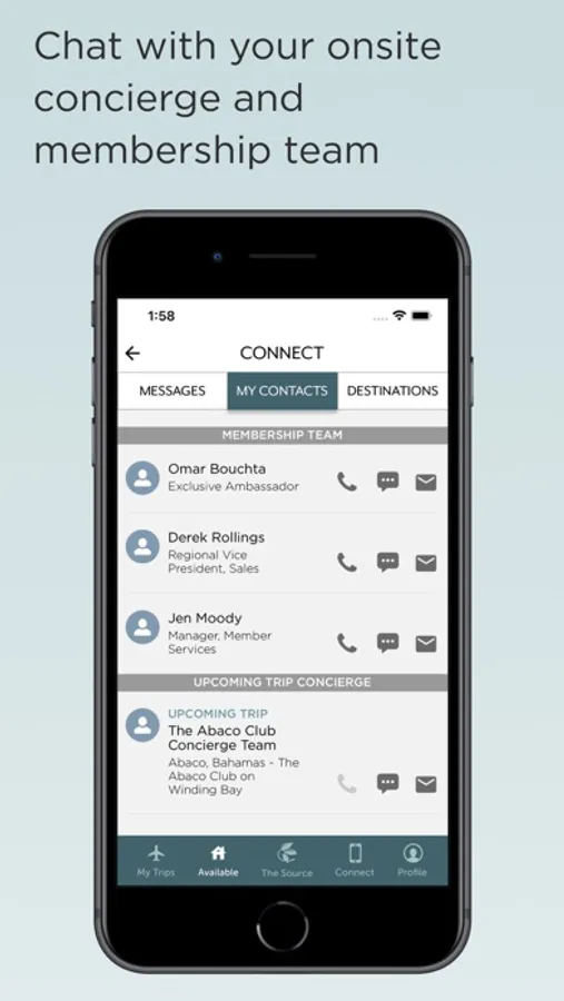 • Send messages directly to your on-site Concierge, Ambassador, or Regional Membership Director