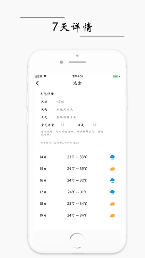 "白天气" - 精准预报,直观显示天气详情,七天气温显示,一目了然