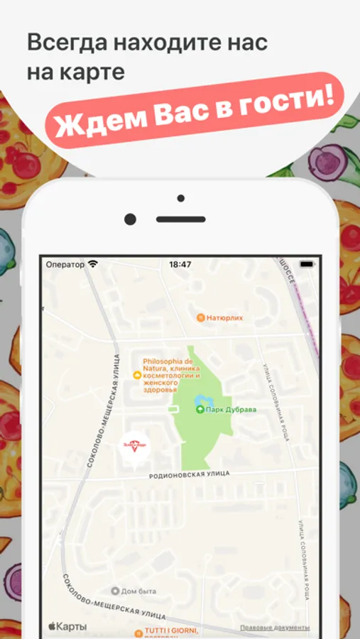 Мобильное приложение “Химки Пицца” позволит вам легко и просто оформить и оплатить доставку, предзаказ или самовывоз самой вкусной еды в Куркино.