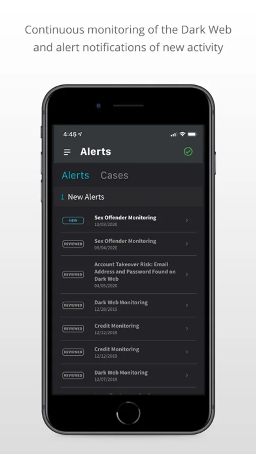 • Dark Web Monitoring | Continuous monitoring of the Dark Web where information is traded and sold, and alert notifications when activity is found