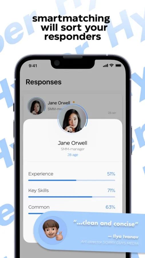 Hyper is a recruiting app that connects the best companies with the best young professionals. We know what the job market and recruitment will look like tomorrow!