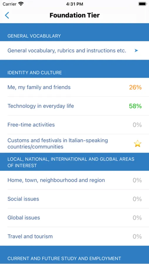 • Motivation by progression - clearly see how you are progressing within each topic.