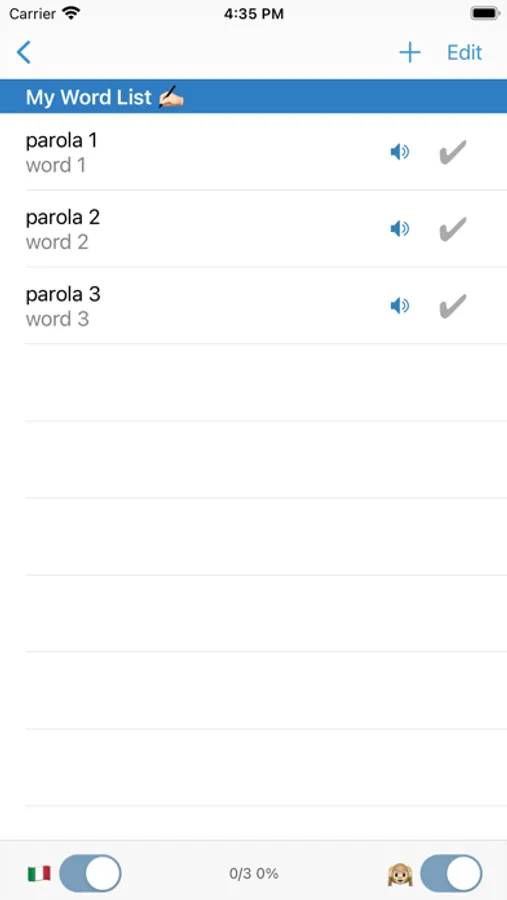 Create your own word list and listen to the Italian pronunciations which are automatically produced for you.