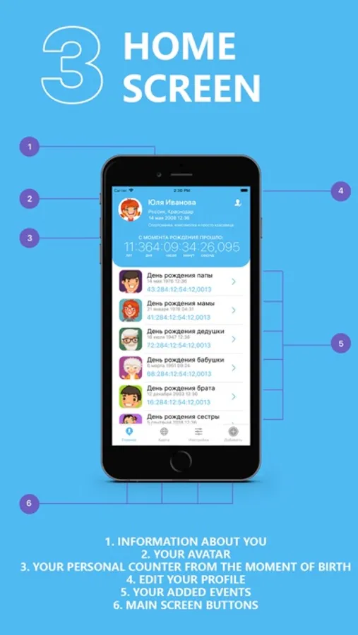 The UNIBIRRS application is a unified birth registration system. The uniqueness of the service is in the synchronization of events with universal time - the standard of frequency and time. The place of origin of the event is also recorded on the electronic map of the planet Earth. The birth registration starts the countdown of the user's life time in seconds of the planet Earth.