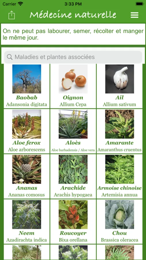 - Présentation des maladies avec les plantes qui permettent de les soigner
