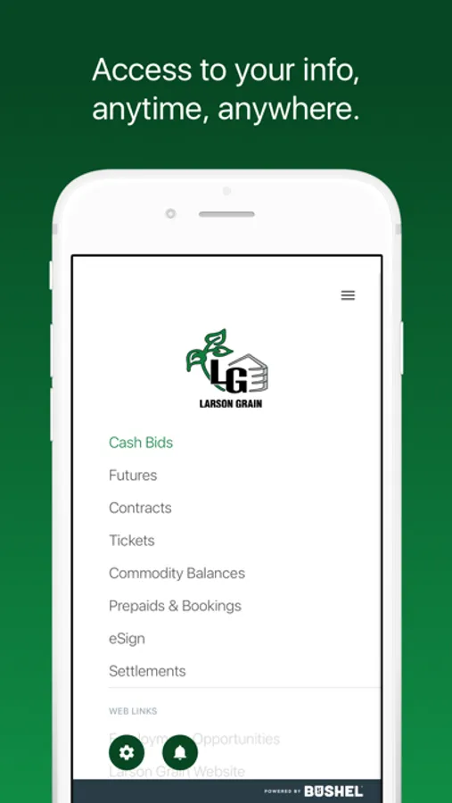 The Larson Grain app is free, secure, and developed by the industry-leading Bushel platform.