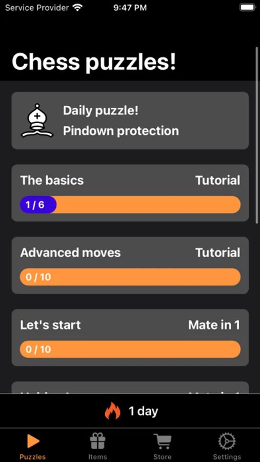 Well, you’ll love Chess Puzzles! This fun variation of the chess game includes mind-teasing challenges categorized in levels that are sure to test your chess skills and problem-solving thinking.
