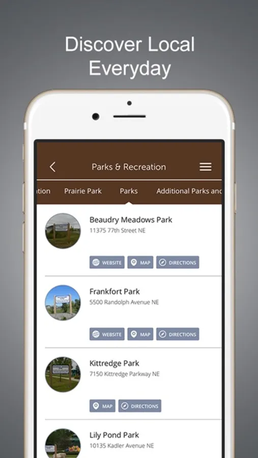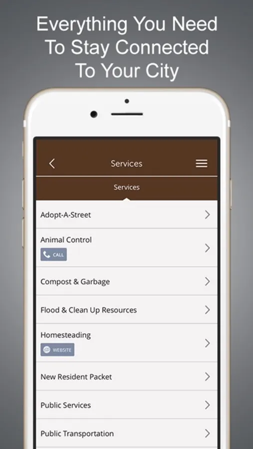 Government, Departments, and Parks & Recreation allow you to have all the important contact and destination information in your city with the tap of a button. Learn about your city's history, demographics and elected officials. Find parks, facilities and points-of-interest along with information, phone numbers, maps and directions.