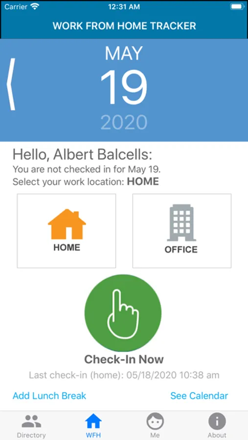 - A simple but powerful Work From Home Tracker with check-in/check-out, and lunch breaks