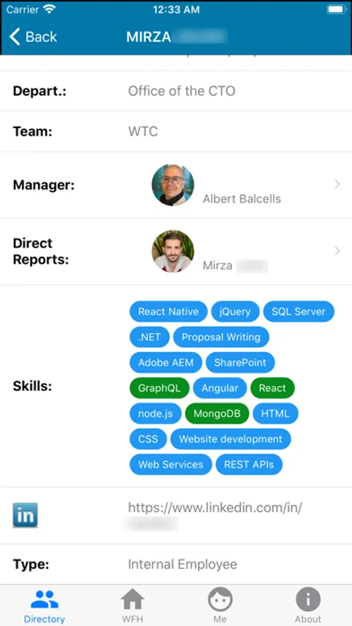 A rich, easy-to-use, employee skills directory for your company - an "internal linkedin" designed to be maintained by your HR team using a simple web portal. The entire company at your fingertips, always up-to-date. Search, lookup, call, text, email, check-in from home, or analyze timesheet utilization reports in seconds.