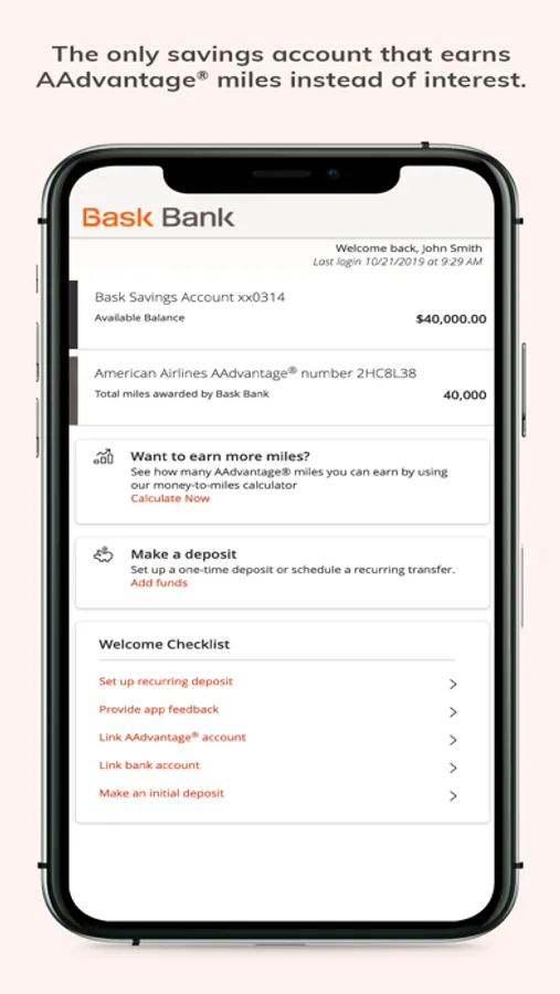 Signing up for a Bask Savings Account is easy, and there are no fees. Miles are earned daily and awarded monthly, and they’re deposited directly into your linked AAdvantage® account so that you can redeem them like you would any other miles that you earn with American Airlines.