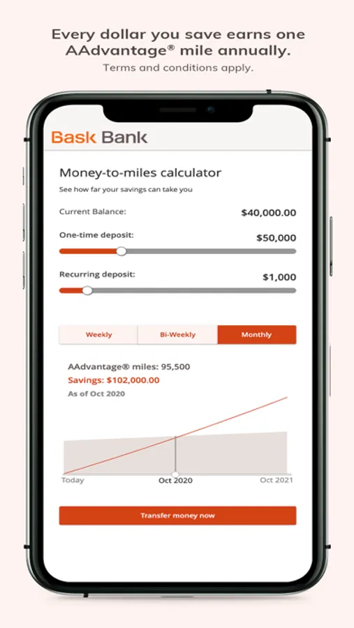 With the Bask Bank mobile app, you can take earning miles and building your savings into your own hands.