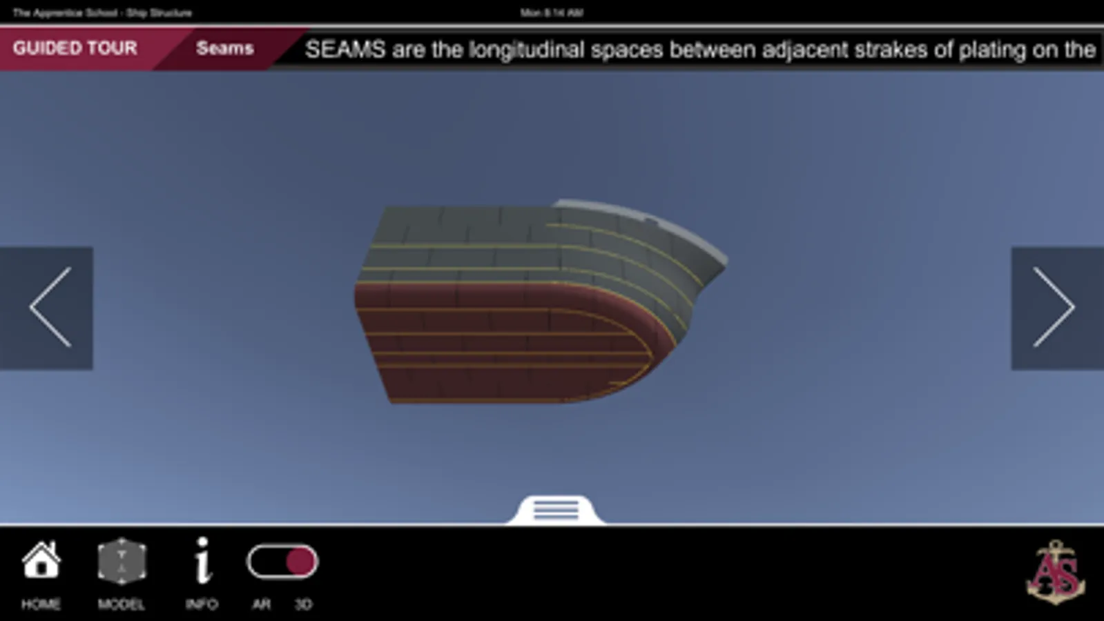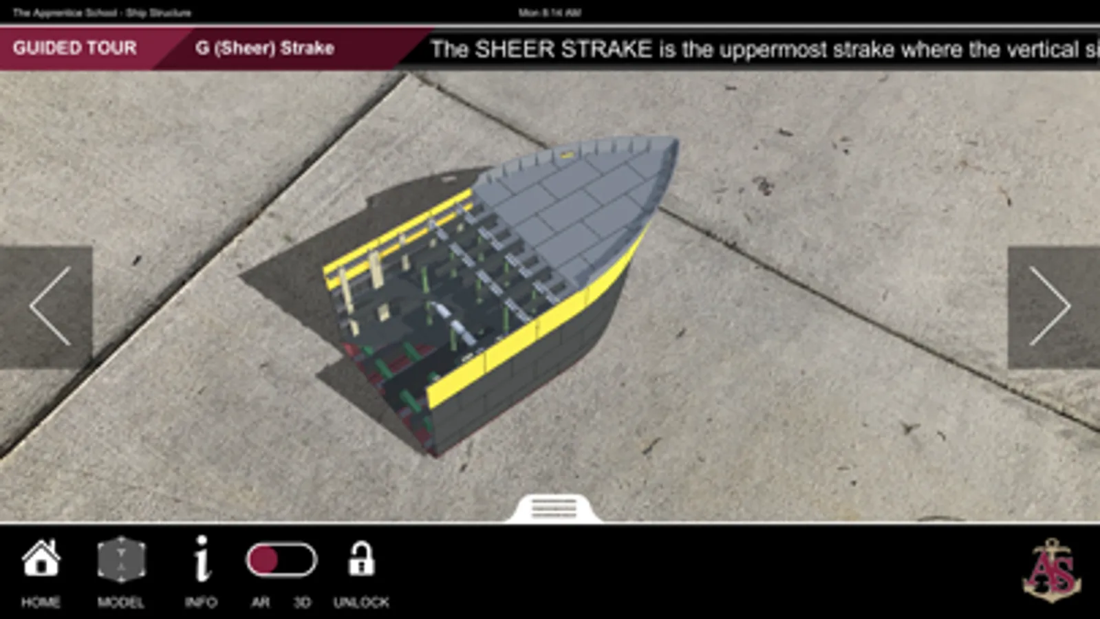 Ship Structure is an educational mobile experience that teaches ship terminology using a robustly detailed and fully interactive 3D model. The application contains three experiences: