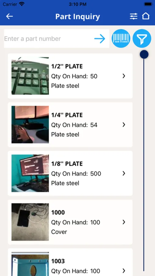 - Information and image of the part. See how many parts are on hand, on reserve, in process, ready to ship, and in need to purchase