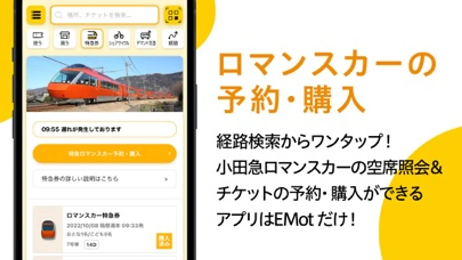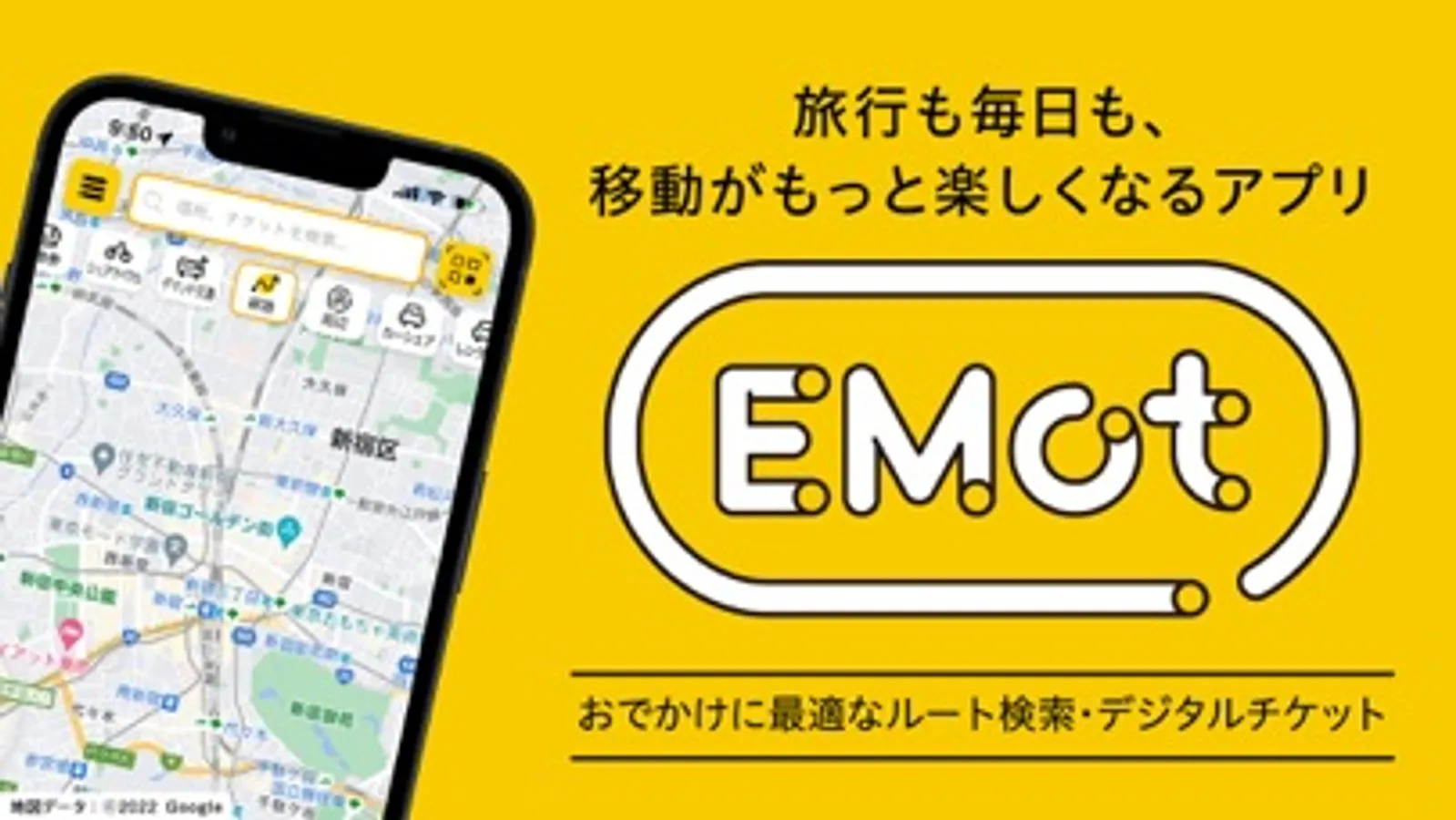 EMot は、ここにしかない“デジタルチケット”や新しい乗換案内を通して、日常・非日常の移動をよりスムーズに、よりスマートに、心ときめく「いきかた」を提案するアプリです。