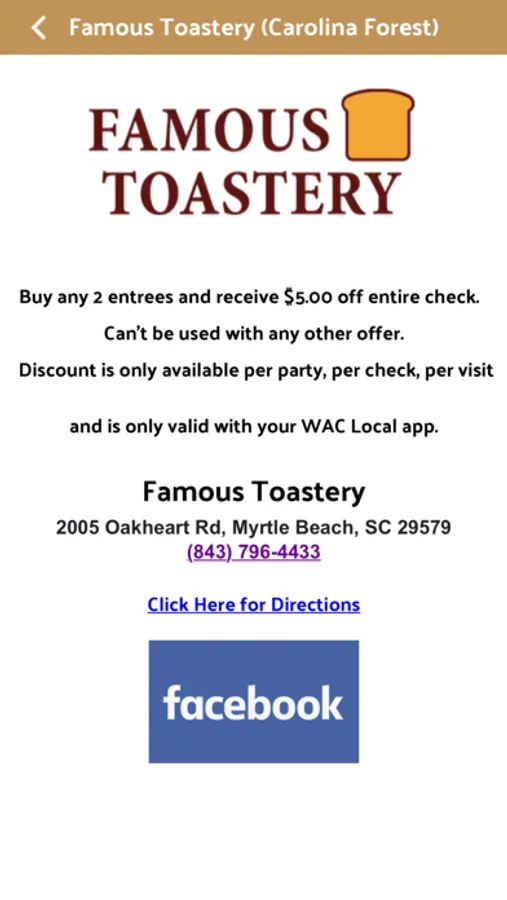 WAC Local App was developed for locals to support locals. The local community wants to shop, dine and live local. It only makes sense to have 1 app that promotes all of the local businesses with exclusive offers and loyalty programs that reside in one easy to use intuitive mobile experience. Using and promoting the WAC Local app you will enjoy more local activities and support local businesses. Let's come together as a community! We started in 2018 with Conway SC and now servicing the entire Grand Strand and Horry County SC area.