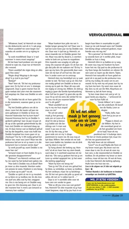 Kuier gee raad oor alles van ouerskap, geldsake, verhoudings en gesondheid tot mode, skoonheid, dekor en kos. Die tydskrif deel inspirerende stories oor mense in die gemeenskap en streef daarna om lesers op te hef en te bemagtig deur die klem te plaas op positiewe stories en suksesvolle rolmodelle. Die projekte is grootliks gemeenskapgebaseerd, met die visie om waarlik ’n verskil in lesers se lewens te maak.