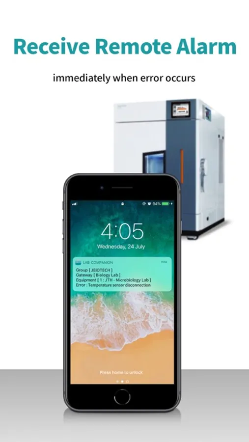 It provides real-time alarm for extended door open, temperature deviation, etc. of connected equipment.